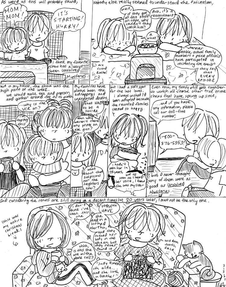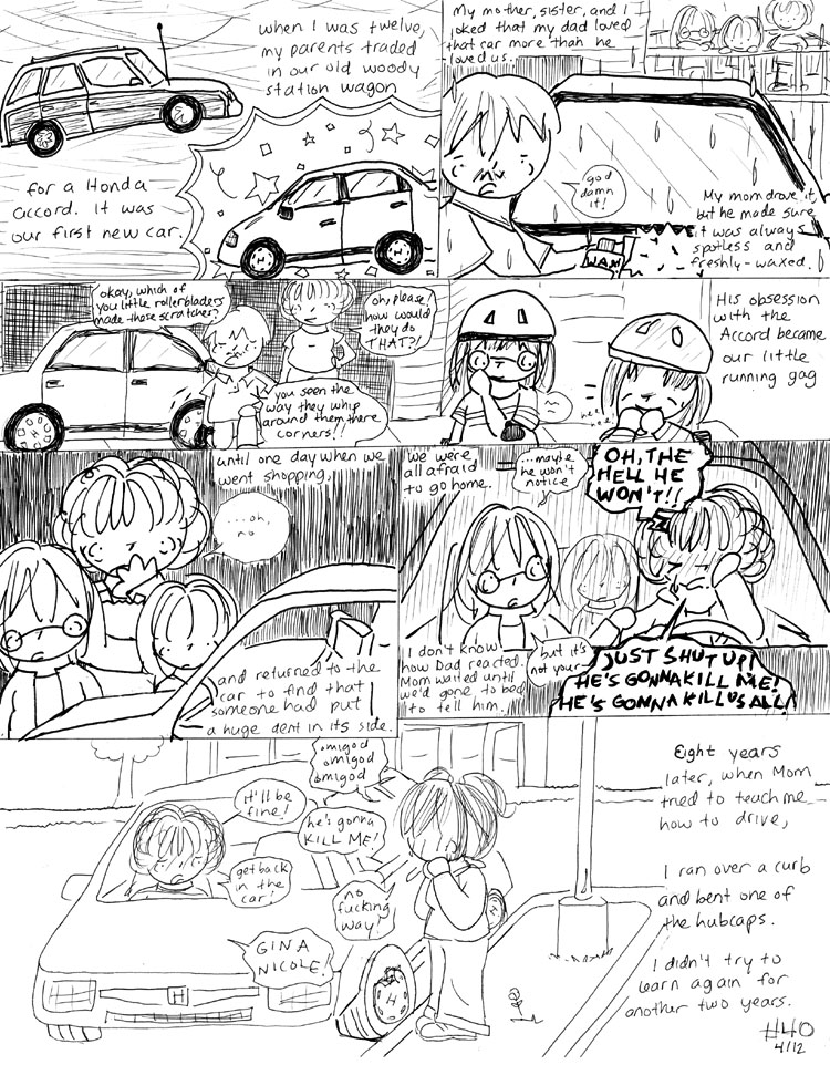 Behold, the autobiographical comics I’ve been making off and on since 2005. I used to call them my Emo Comics. Some are serious, some are silly. Some of them are about me as a toddler, some of them are about being a parent, but most of them fall somewhere in between. Basically I am extremely awkward and incapable of being happy, but maybe my dumb misfortunes and insecurities will make you chuckle.