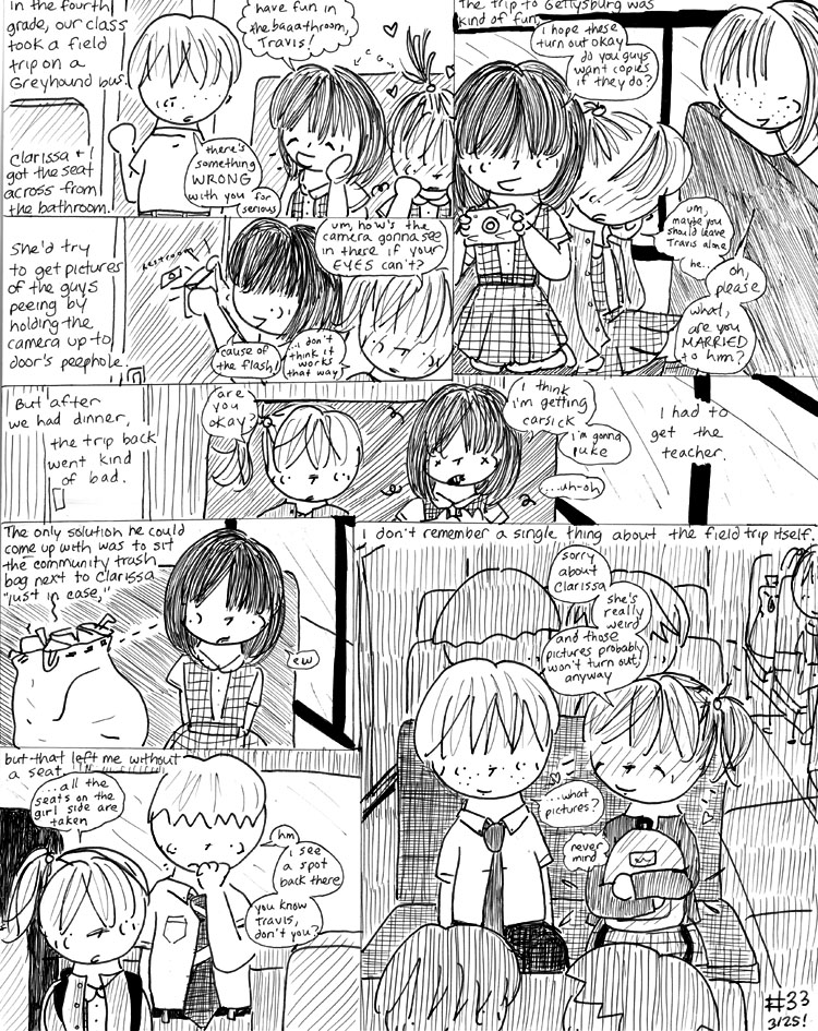 I graduated with a bachelor’s degree in creative writing in 2008. My thesis project was a collection of personal essays, half of them done in comic form. I was the first person at my school to make comics as part of the writing program, and I wound up being far from the last, as my school now offers a graphic novel writing course. Kind of cool.